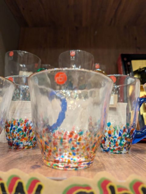 - 底に散りばめられた色ガラス:光を受けるたびに輝きが変わり、飲み物を注ぐとまるで風景画のように美しい。